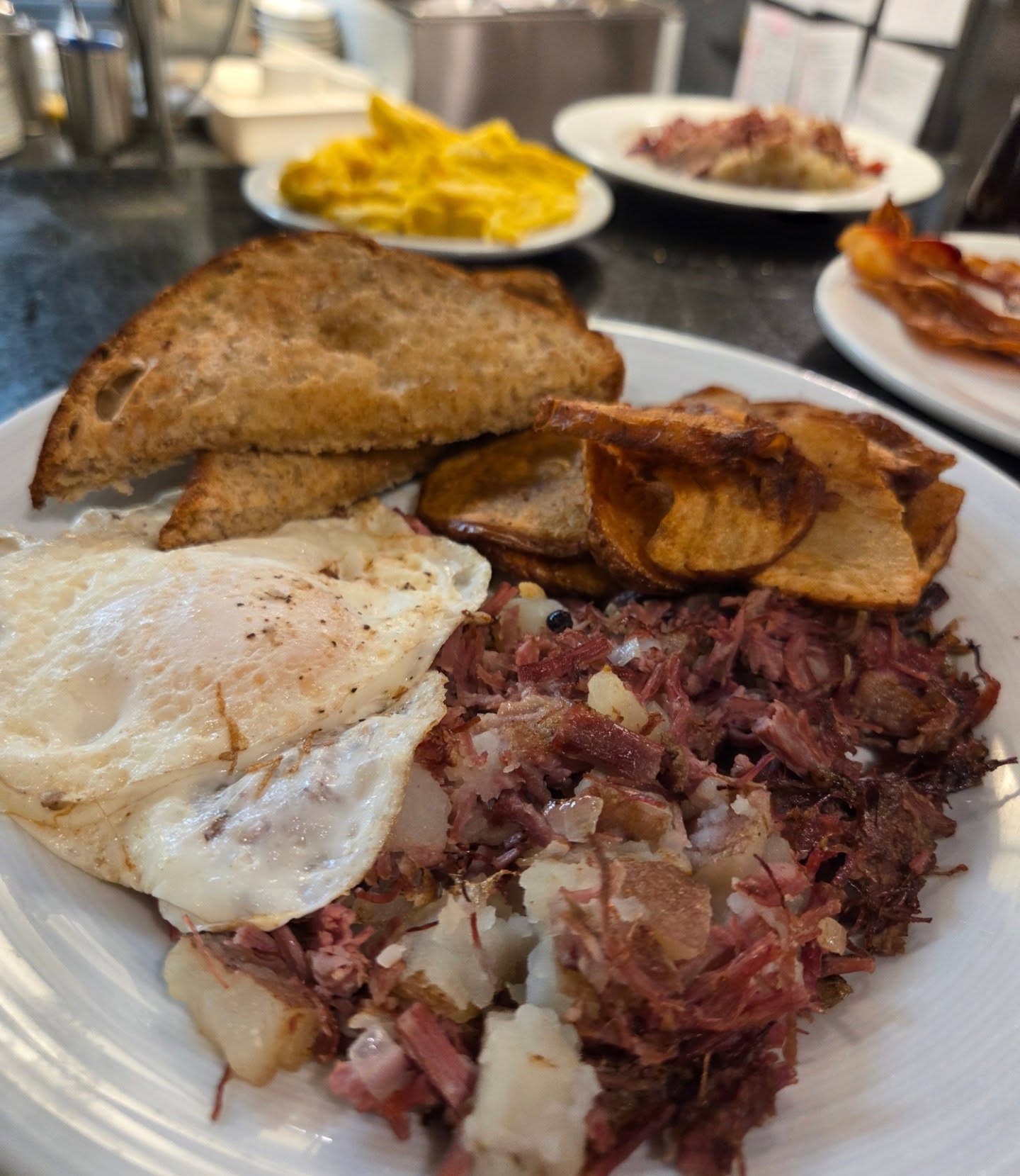 Stop in the other morning for a coffee, toast and two over easy eggs and was sitting in the St. Patrick's Day room (well that's what waitress Marilyn said). Service was great as usual... Marilyn was awesome and helpful. Tried the corn beef ... it was actually better than I thought... it in a hash format but it good. I like coming here.